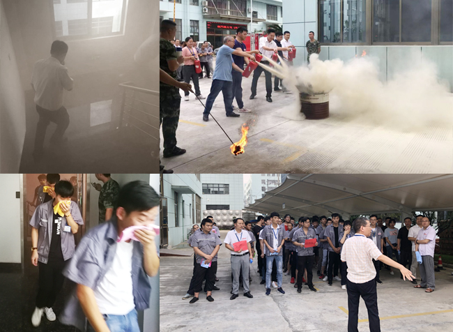 當日下午4點30分,由后勤小組人員點燃提前準備好的兩個油桶,并拉響警報,由指揮部啟動救援,首先關(guān)閉電源,疏散人員逃生,各引導員分別立于逃出樓梯口,指揮人員有序逃生,員工們手持濕毛巾捂住口鼻,沿著樓梯墻側(cè),在煙霧中摸索著下樓,公司共六層,一樓和二樓的員工提前集合到三樓,同其他樓層的員工一起往下逃生,整個過程到集合清點完畢用時 3分10秒,醫(yī)療小組檢查匯報,無人員受傷。隨后由應(yīng)急小組組長張美明進行總結(jié)點評,表明此次演習的重要性,往后每年也會突擊演練一次,加強員工的安全意識,增強員工的逃生技能及應(yīng)急小組的應(yīng)變和組織管理能力,并指出在逃生過程中,必須謹記:禁止乘坐電梯,拿濕毛巾捂住口鼻,靠樓梯內(nèi)側(cè)匍匐下行。
